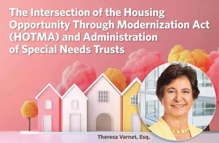 By Theresa M. Varnet, Esq. New federal regulations known as the Housing Opportunity Through Modernization Act (HOTMA) impact how distributions from special needs trusts (SNTs) affect the beneficiary’s eligibility for low-income housing subsidies. These include Section 8, Project Based, as well as other HUD housing programs. These new regulations highlight the need for trustees of…