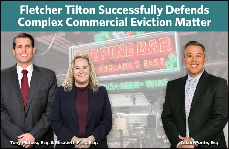 (April 7, 2026 – Boston, MA) Fletcher Tilton Attorneys Adam Ponte, Elisabeth Finn and Anthony Moroso successfully defended a complex commercial eviction matter pending before the Boston Municipal Court, Central Division, after concluding a three-day bench trial. The firm’s client, a well-known Boston restauranteur, owns and operates The Pine Bar, which is the only full…