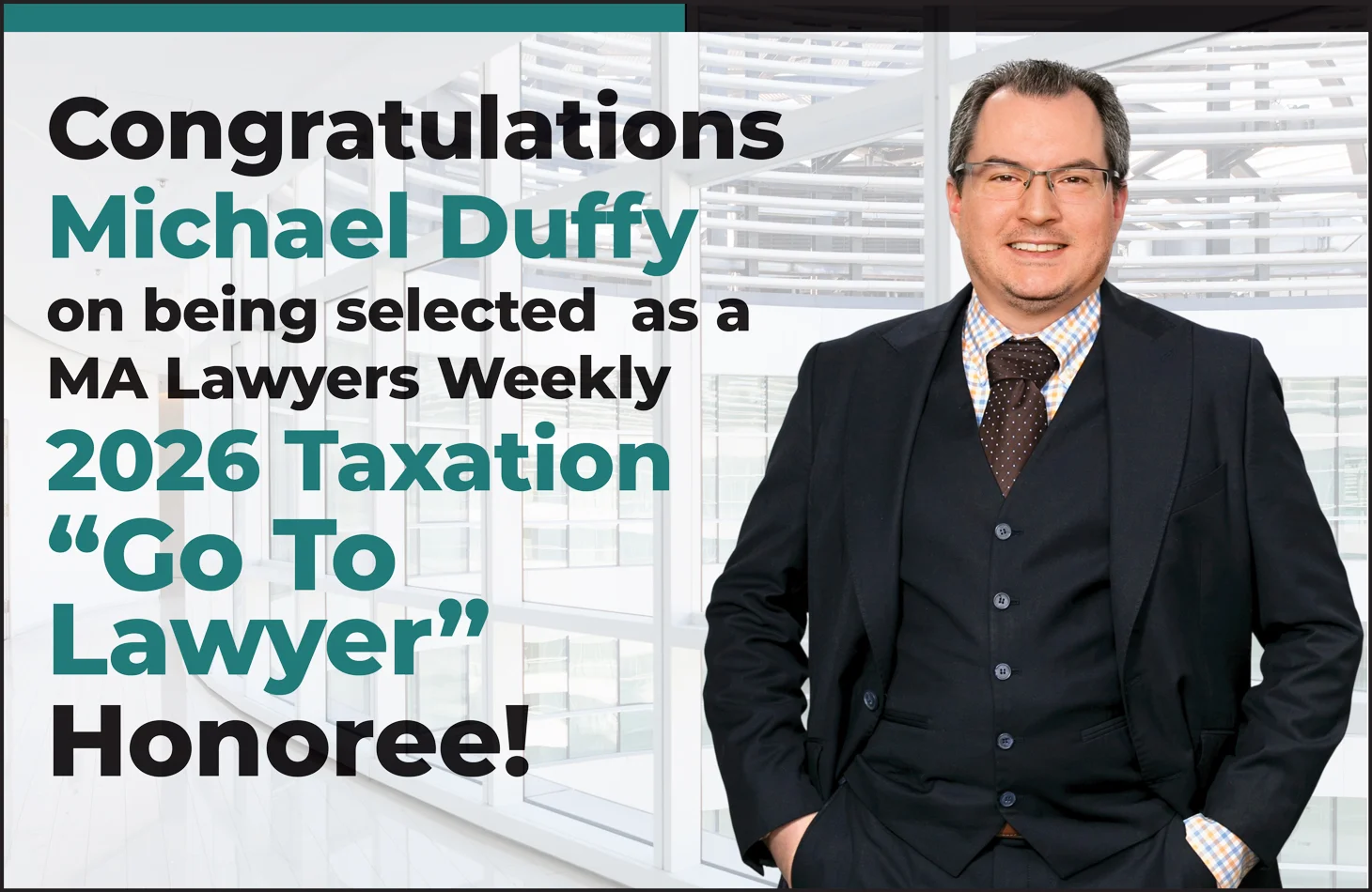 We are proud to congratulate Michael Duffy on being selected as a Massachusetts Lawyers Weekly 2026 “Go To Lawyer” for Taxation.